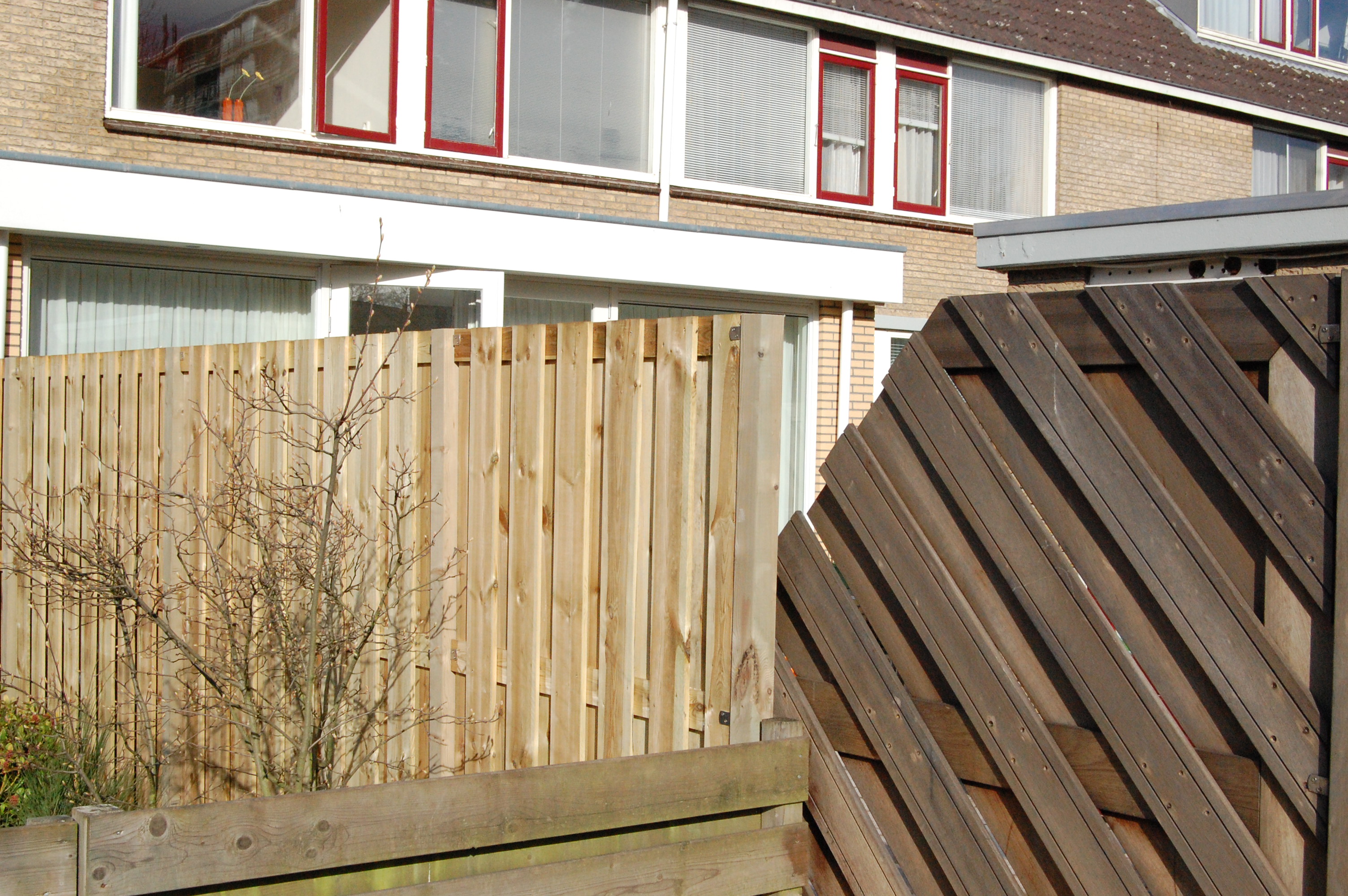 Piet heeft m.i. gelijk, maar wat is het probleem? ik zie het zo niet op de foto. hoewel het inderdaad mooier is als alle schuttingen dezelfde uitstraling hebben.