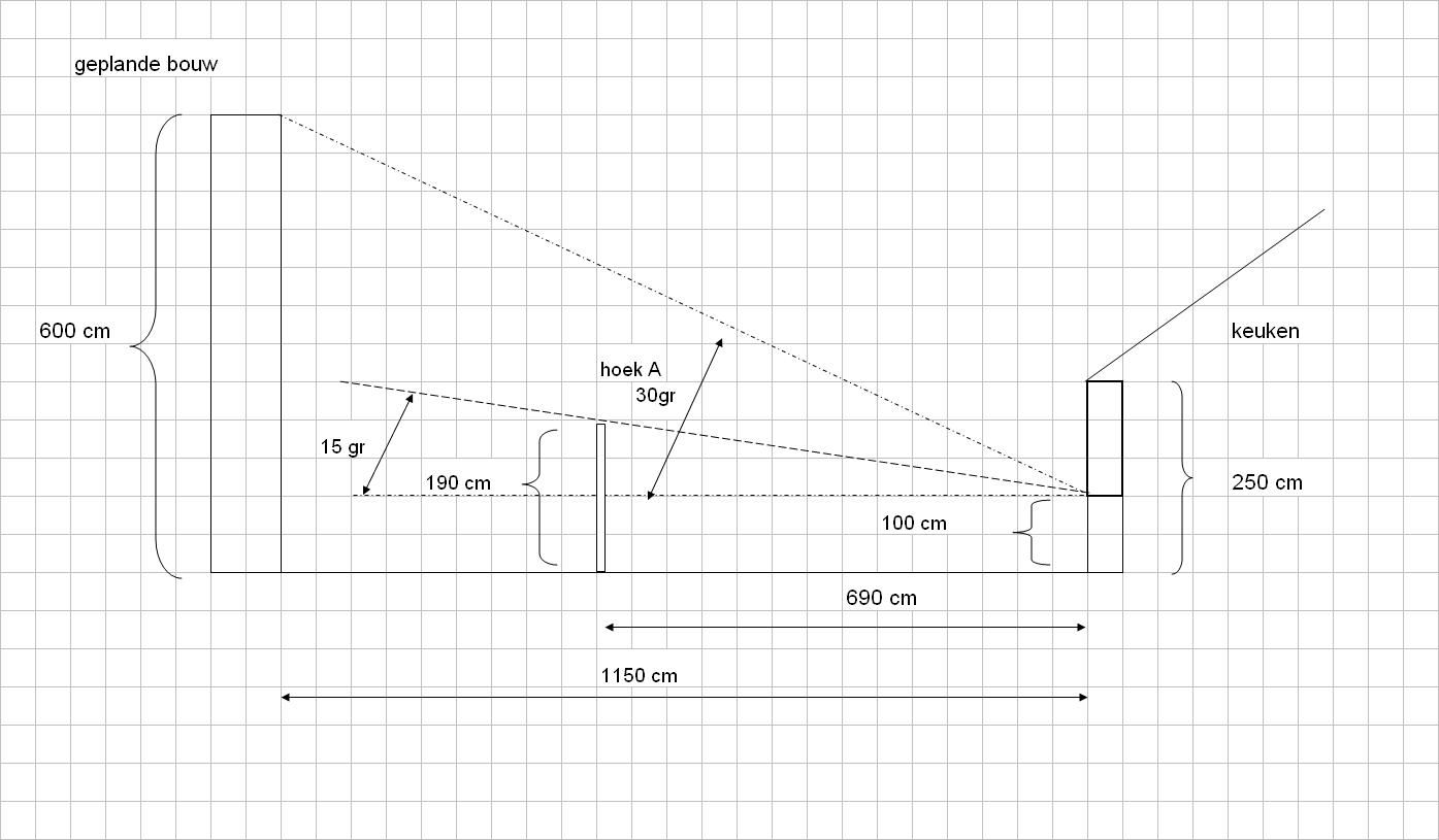 Als deze op de schets voor de aanbouw staat en de nok een paar meter hoger zit
