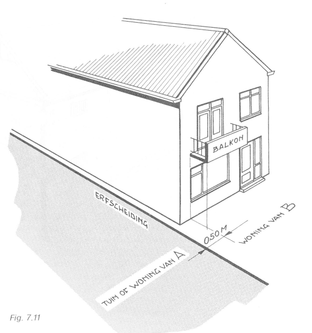 Waar kan ik vinden dat er geen gevelopeningen aanwezig mogen zijn in gevels haaks op de erfgrens welke uitzicht geven op erf van de buren.