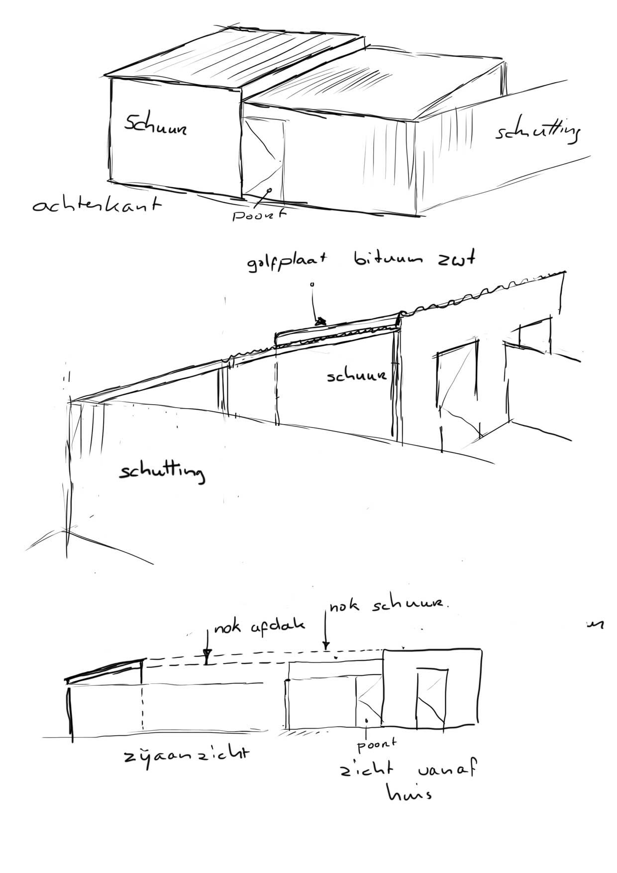 ik wil een afdak plaatsen naast me te kleine woningbouwschuurtje.. de nok blijft ONDER de nok van het schuurtje.. dakbedekking worden evenens als schuurtje, zwarte aquaplan golfplaten..