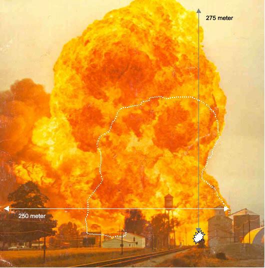 Als ik zie op een stuk van de provincie Limburg voor het beleid van LPG stations en wat de gevolgen kunnen zijn bij explosie (vuurbal van 275 mtr hoog en diameter van 250 mtr) geeft een heel geaarlijke situatie. Zie bijlage.
