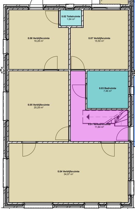 Dat met die overspannende balk werkt ook pas wanneer de doorgang die je daarmee maakt aan de minimale hoogte en breedte-eis voor een verblijfsgebied kan voldoen. Dus minimaal 2,6 meter onder de afgewerkte balk en minimaal 1,8 meter vrije doorgang.