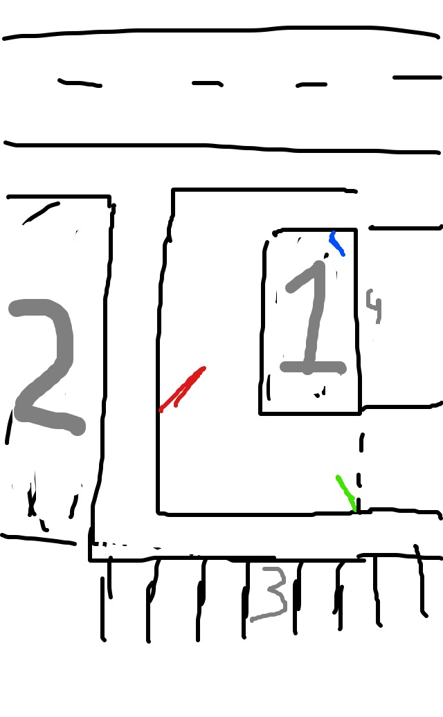 Groen is ingang waar die nu zit. Rood is gewenste ingang.