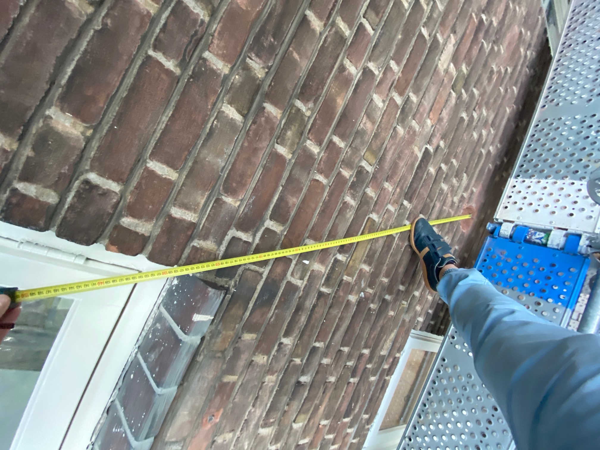 ik heb dit diagonaal gemeten toen de steiger van het schilderwerk er nog stond