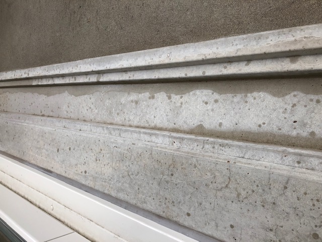 hemelwaterafvoeren zitten nu eenmaal aan de gevel en de posities zijn niet altijd doordacht. Deze goot lijkt me niet eens zo diep. Zelf pas ik in dergelijke situaties t.p.v. de doorloop een aantal ingestorte ribben toe van ca 3 cm en tussenruimte 3 cm waardoor je een "rooster idee" krijgt en daartussen gootjes voor het water door te voeren