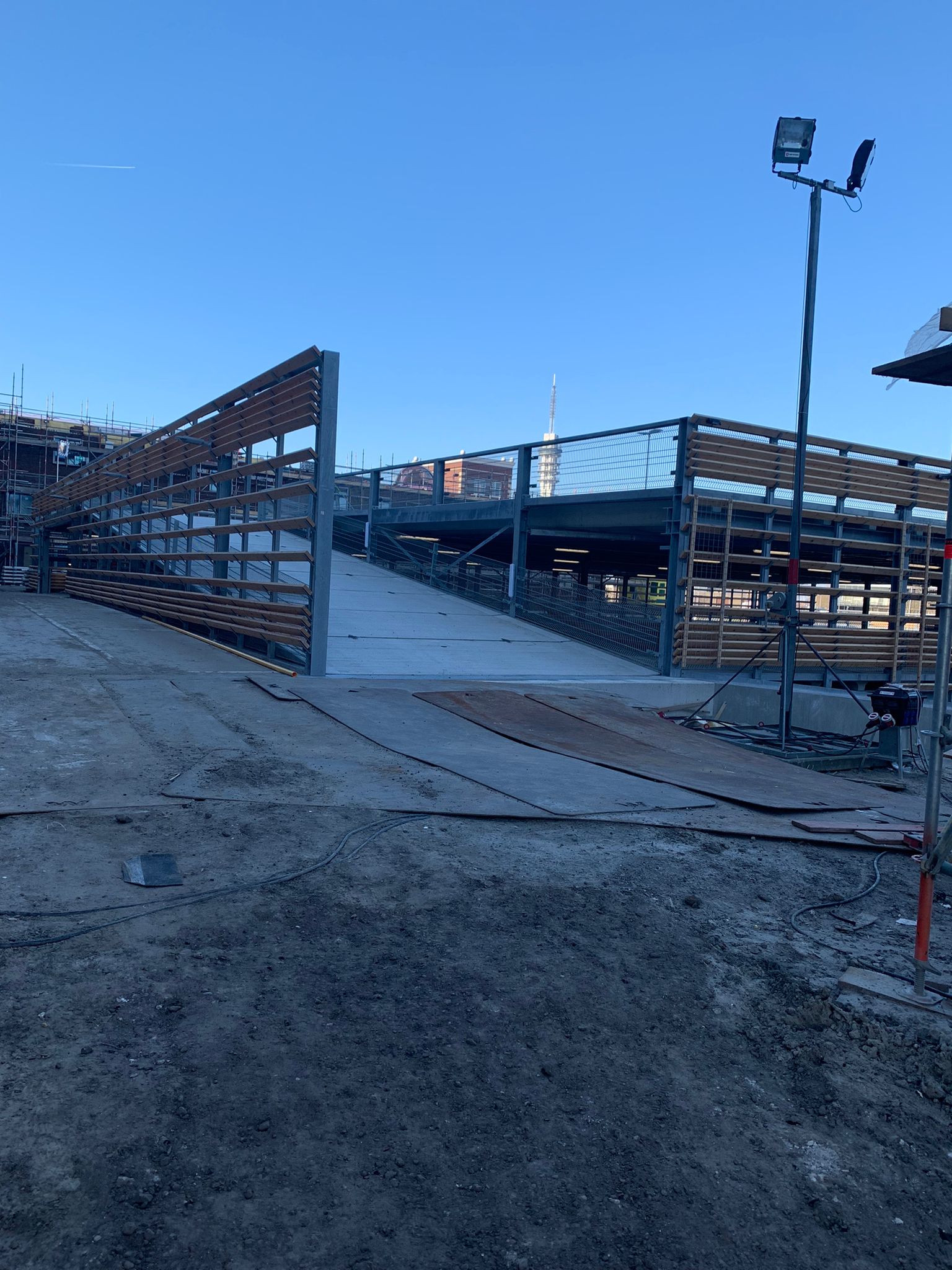 Misschien eerst eens nagaan hoe het terrein verder wordt afgewerkt; mogelijk zijn bepaalde voorzieningen in of langs de bestrating voorzien? Het is nu nog 'n bouwplaats, dus erg vroeg om al te kritisch te zijn.