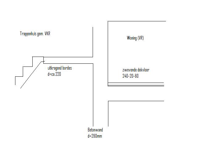 Een degelijk probleem zou je m.i. ook krijgen als de betonvloer van de appartementen doorgestort wordt de gemeenschappelijke VKR in, waar dan geen zwevende dekvloer wordt toegepast.