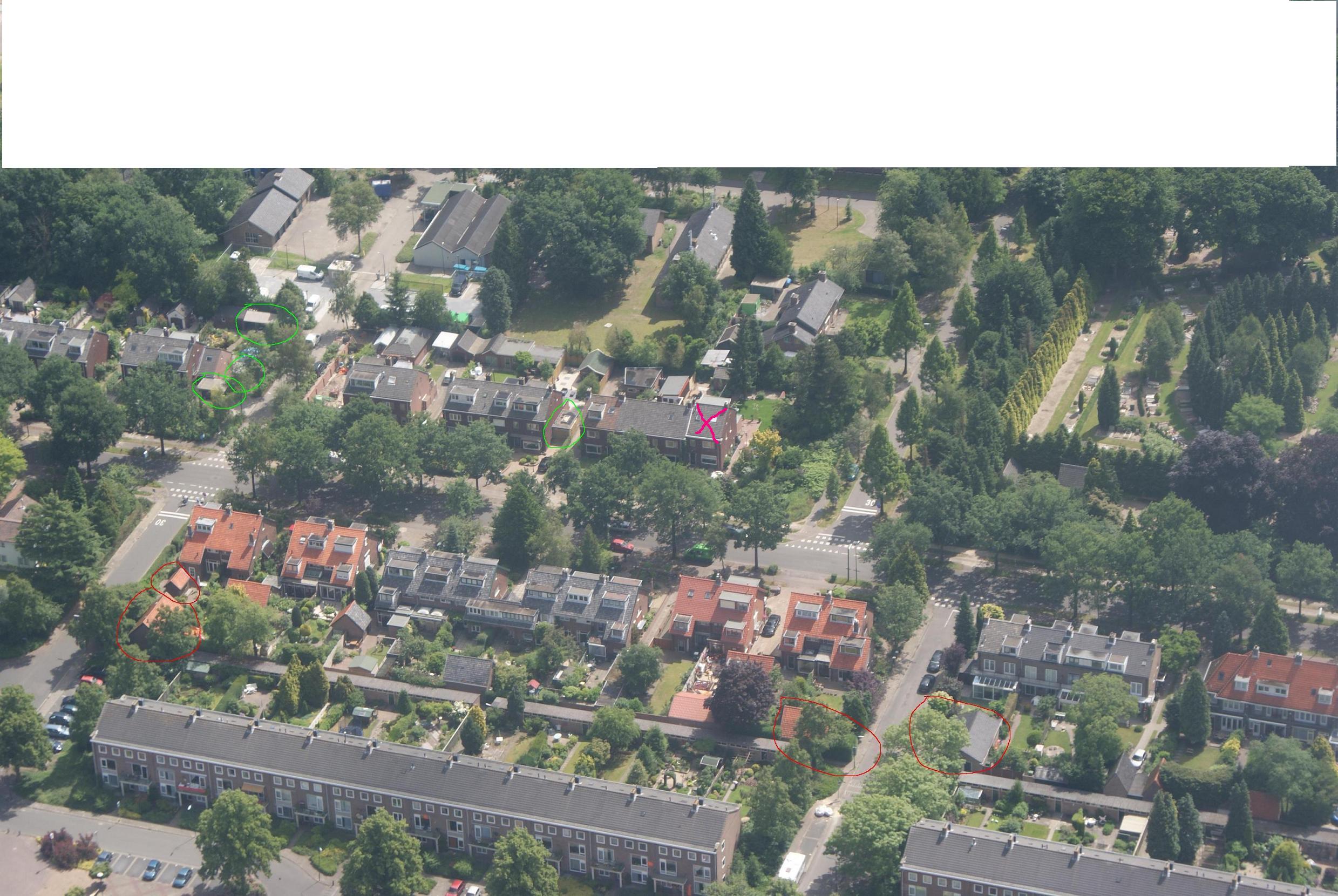 alk ik de luchtfoto bekijk zou alleen de omcircelde bebouwing links bovenin de foto van belang kunnen zijn. De rest zijn niet vergelijkbare gevallen omdat deze achter de hoofdbebouwing is gelegen.