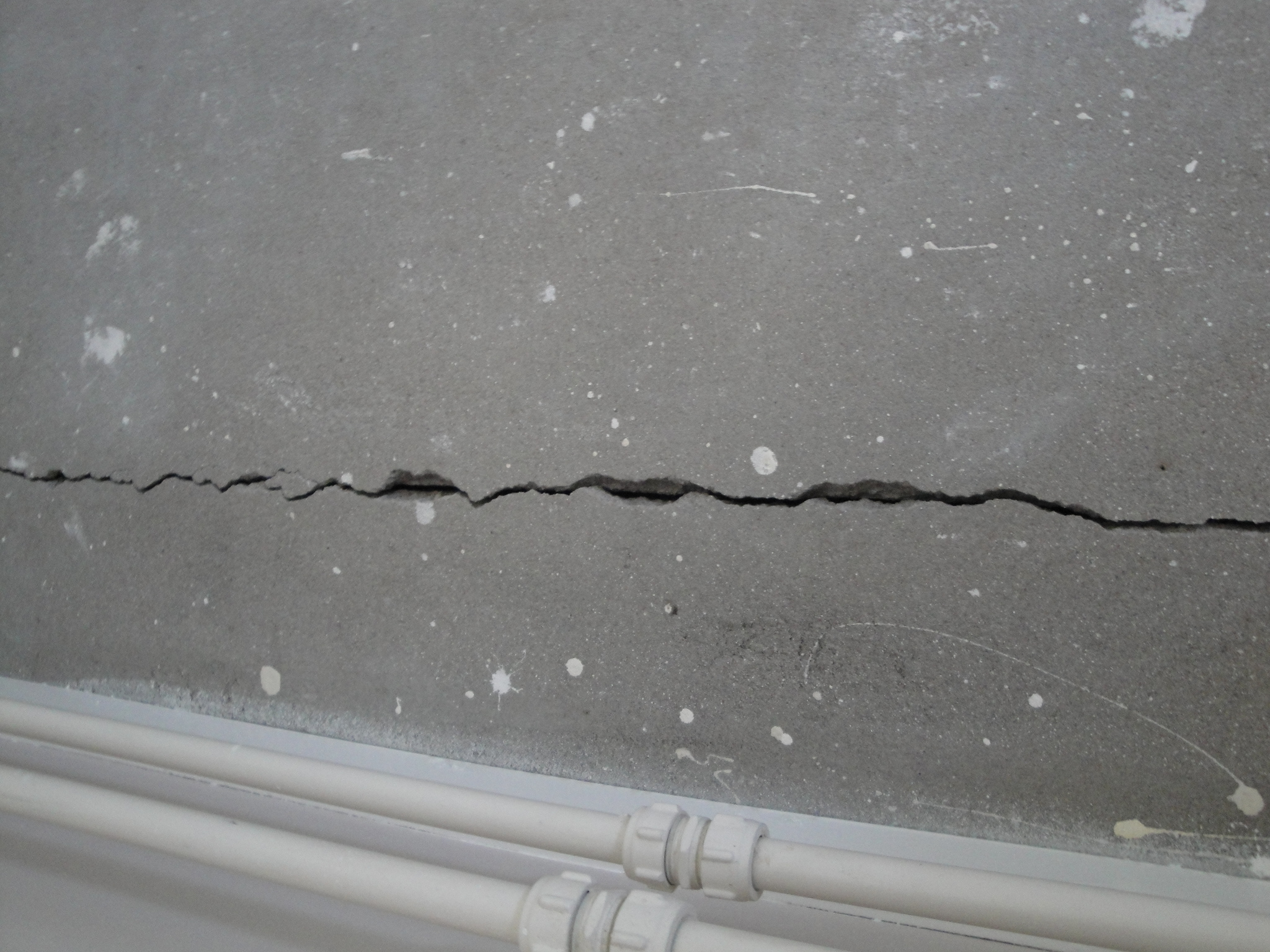 Nadat wij het tapijt verwijderd hadden op onze studeerkamer, zagen wij dat er een lange scheur in de kanaalplaten vloer zat, die op de meeste plaatsen zo'n 5,5 cm diep was.
