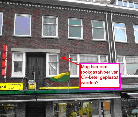 Mijn vraag is of op aangegeven plek op foto een geveldoorvoer van een CV-ketel geplaatst mag worden? Het betreft een afvoer van het middelste appartement. Bij voorbaat dank voor reaktie.