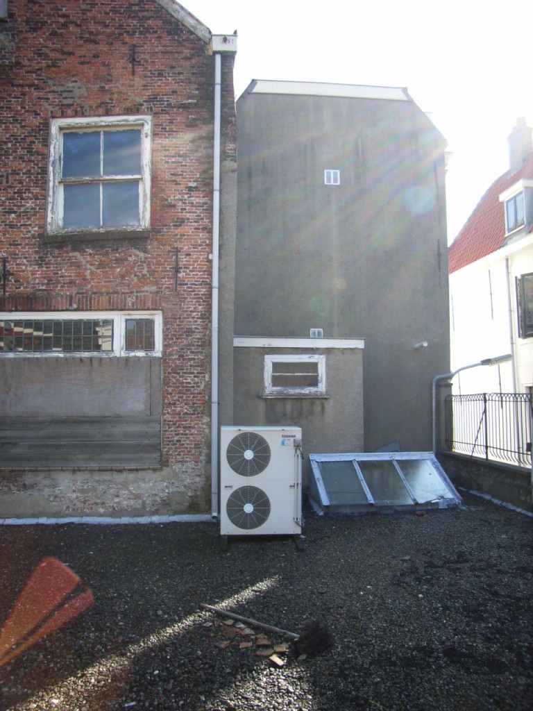 Op het platte dak op de 1e verdieping aan de achterzijde van "ons" pand hebben wij een bestaand aanbouwtje (2 x 3 m.) tegen de niet gemene blinde muur van het buurpand staan.(zie foto)