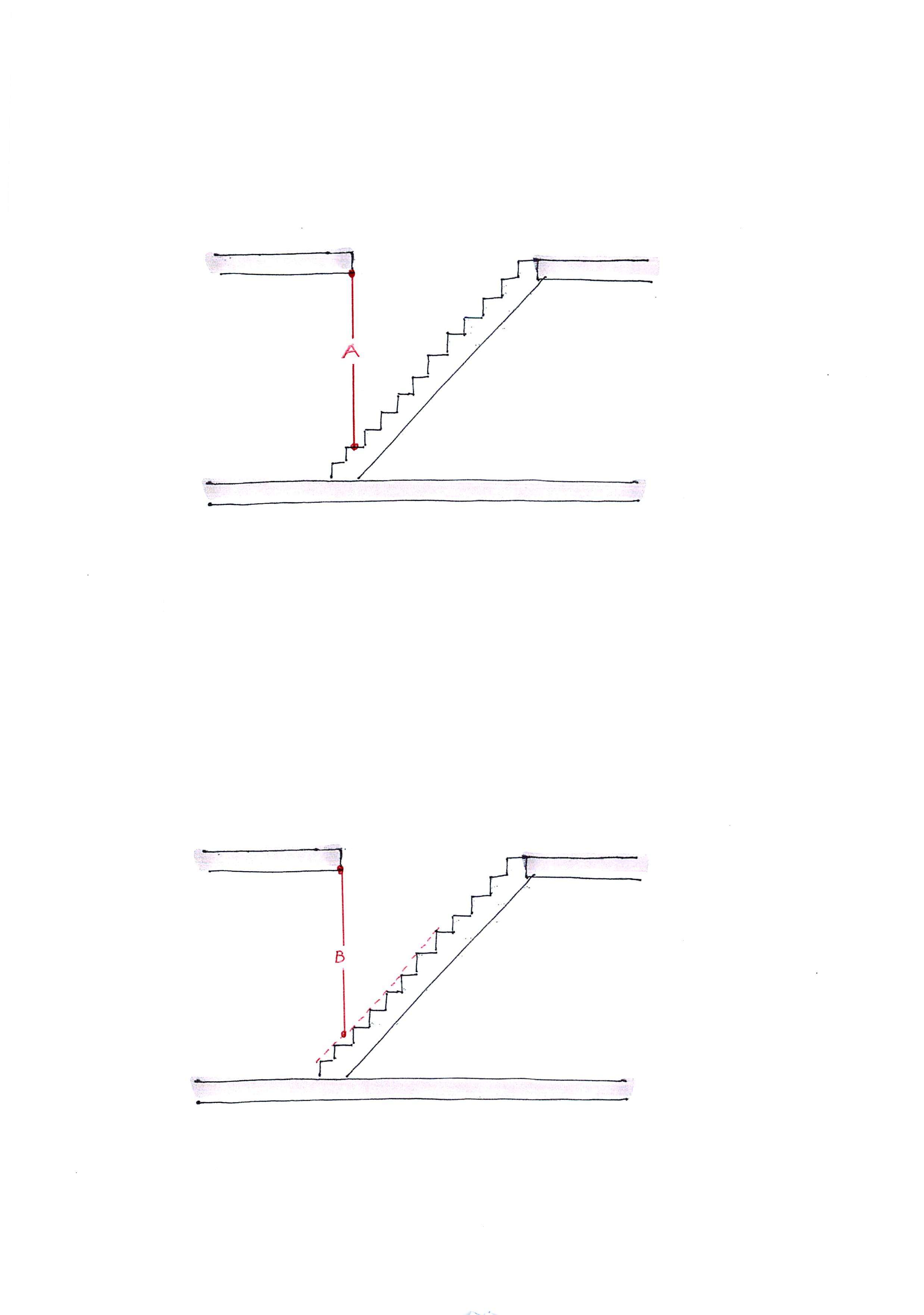 Hoe dient de vrije hoogte boven de trap te worden gemeten? Maat A of B?
