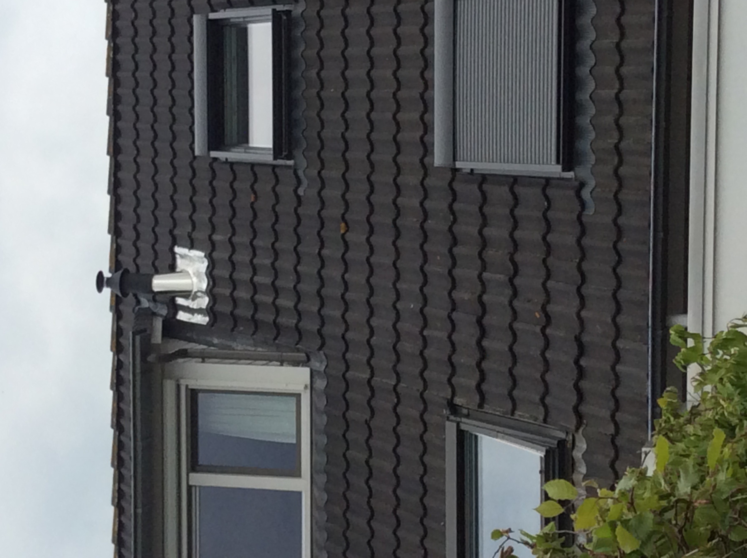 Onze buren hebben vanochtend een afvoerpijp voor de afvoer van een gesloten gashaard bijna op de erfgrens geplaatst (zie bijgesloten foto's). De dakkapel is van de buren en het dakraam ernaast behoort tot onze woning.