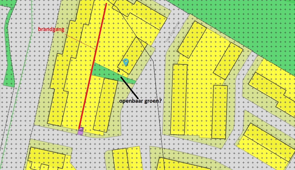 Het bestemmingsplan zegt 'groen'. De praktijk zegt 'pad naar brandgang'
