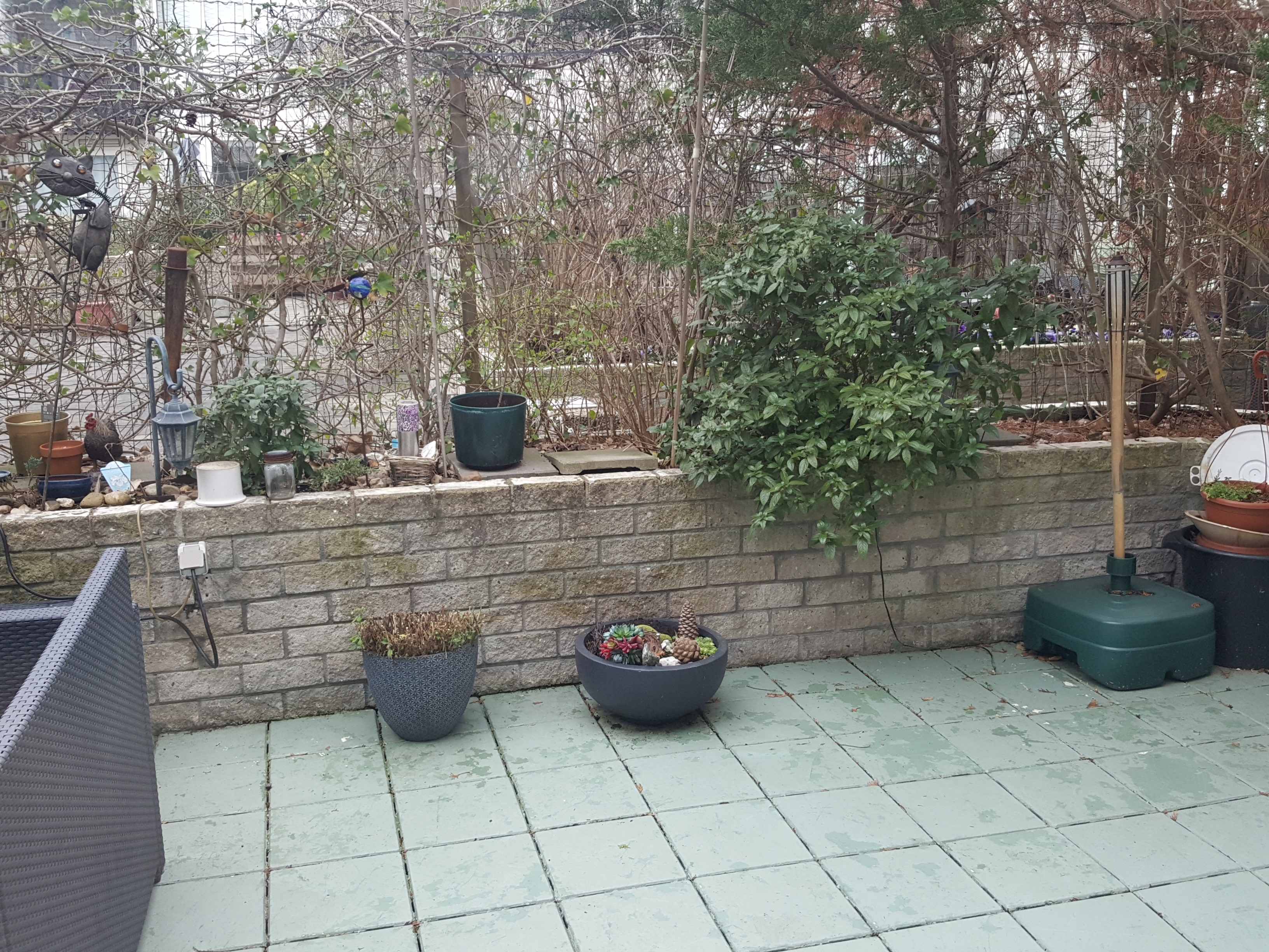 Tussen enkele privé-terrassen, waaronder het onze, en het middenterras staan gemetselde plantenbakken over bijna de gehele lengte van de privéterrassen. Deze plantenbakken zijn tijdens de bouw van het complex (ca 1980) op verzoek van bewoners gemetselt met dezelfde steensoort als het gebouw maar staan niet aan het gebouw vast.