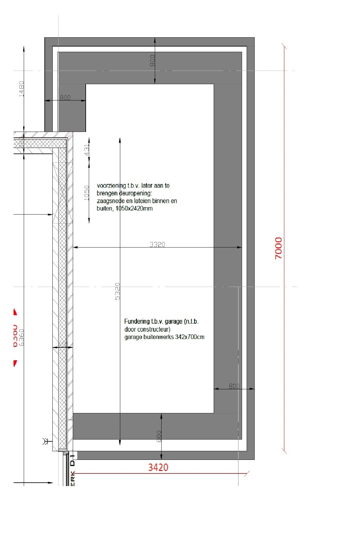 Dat is een terechte opmerking pino. De tekening wekt overigens de indruk dat er al wel rekening is gehouden met een spouwmuur en mogelijk zelfs een vrijdragende systeemvloer (dat zie je wel vaker in projectbouw). Als het alleen een ongeïsoleerde garage/berging was geweest dan had men de fundering wel midden onder het buitenblad gelegd zou je zeggen. En dan had de funderingsstrook ook wel wat smaller gekund zou je zeggen (al is dat natuurlijk mede afhankelijk van de bodemgegevens dus dat blijft even onderbuikgevoel).